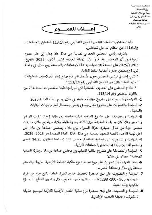 اعلان عن الدورة العادية لشهر أكتوبر 2025